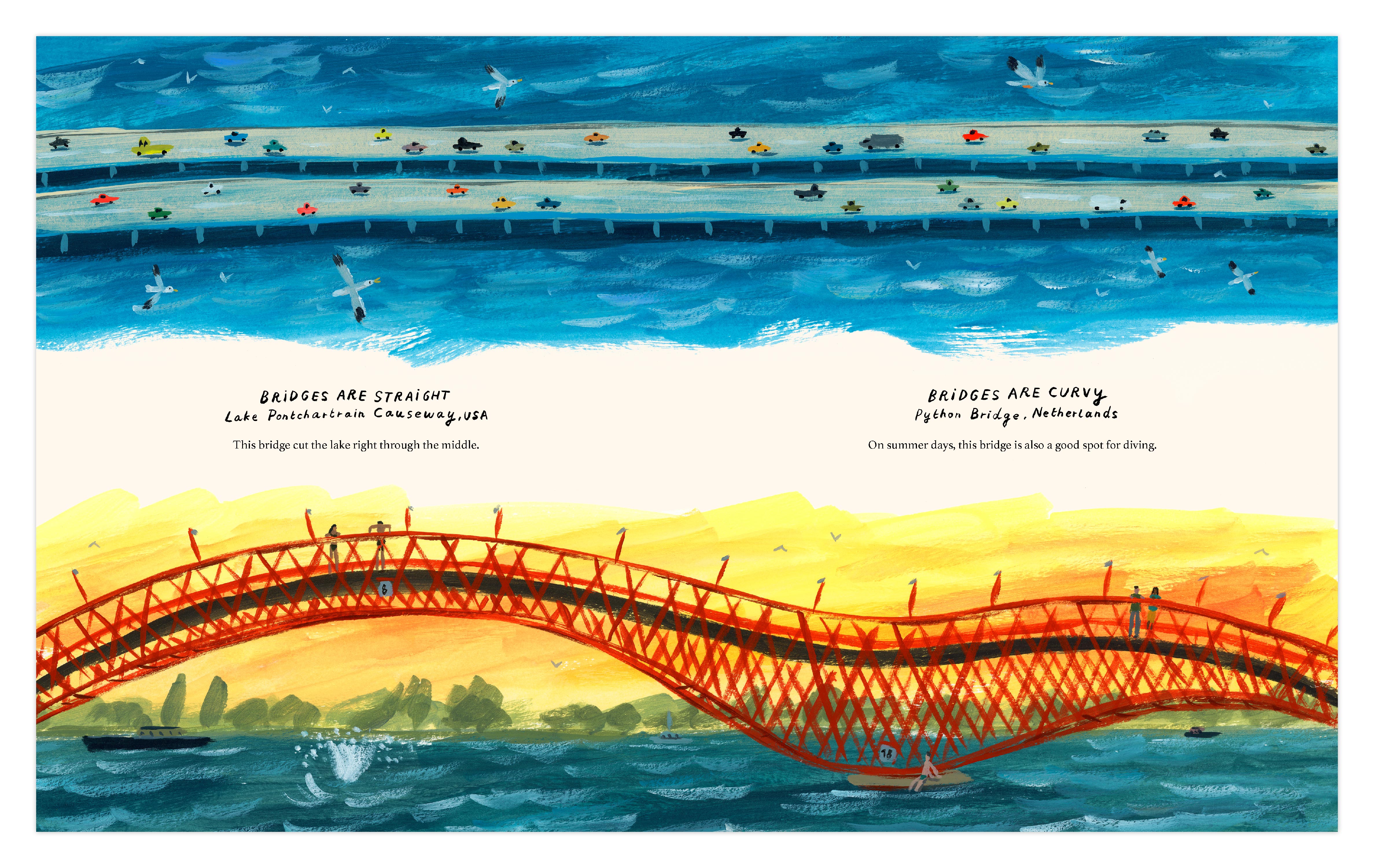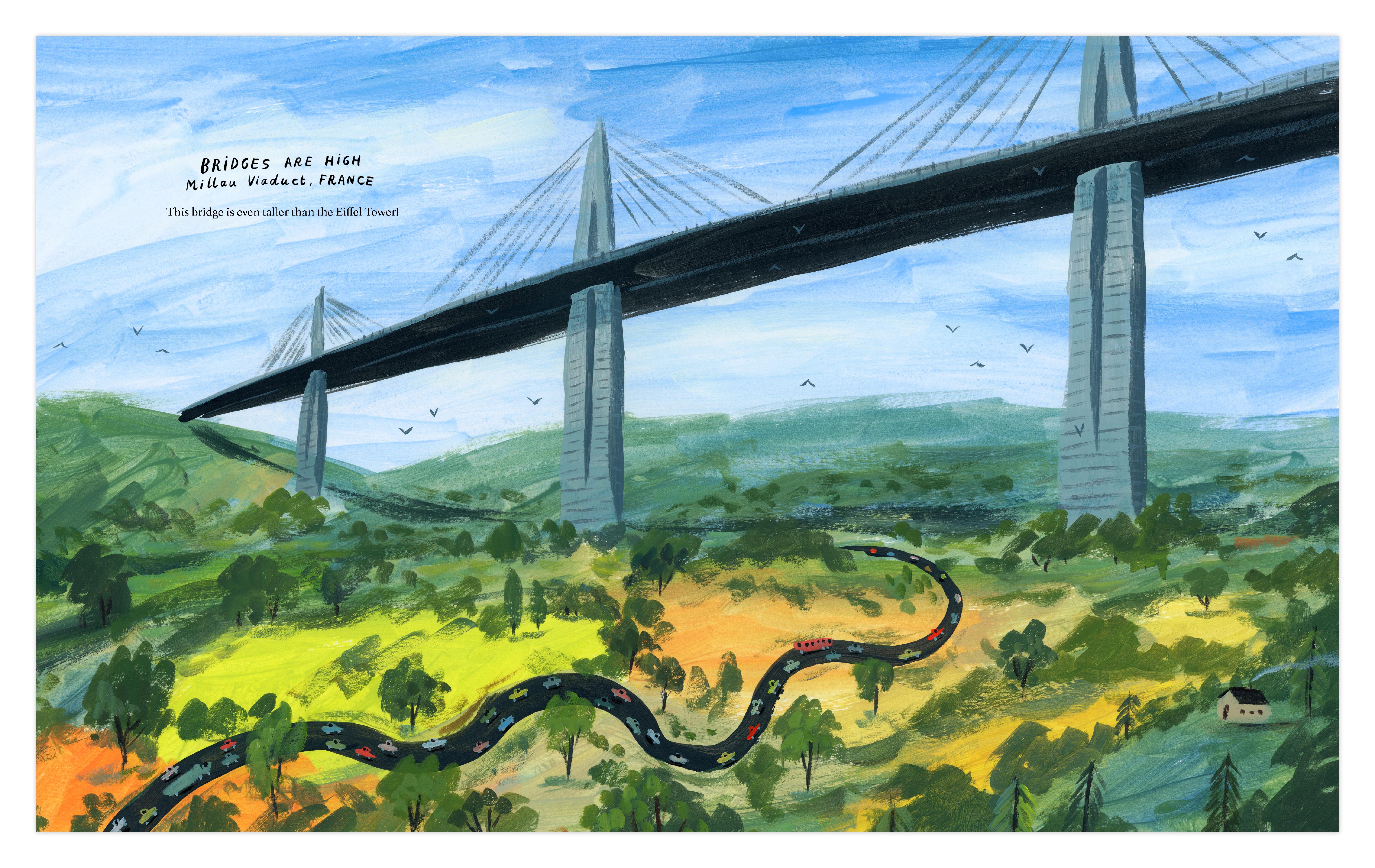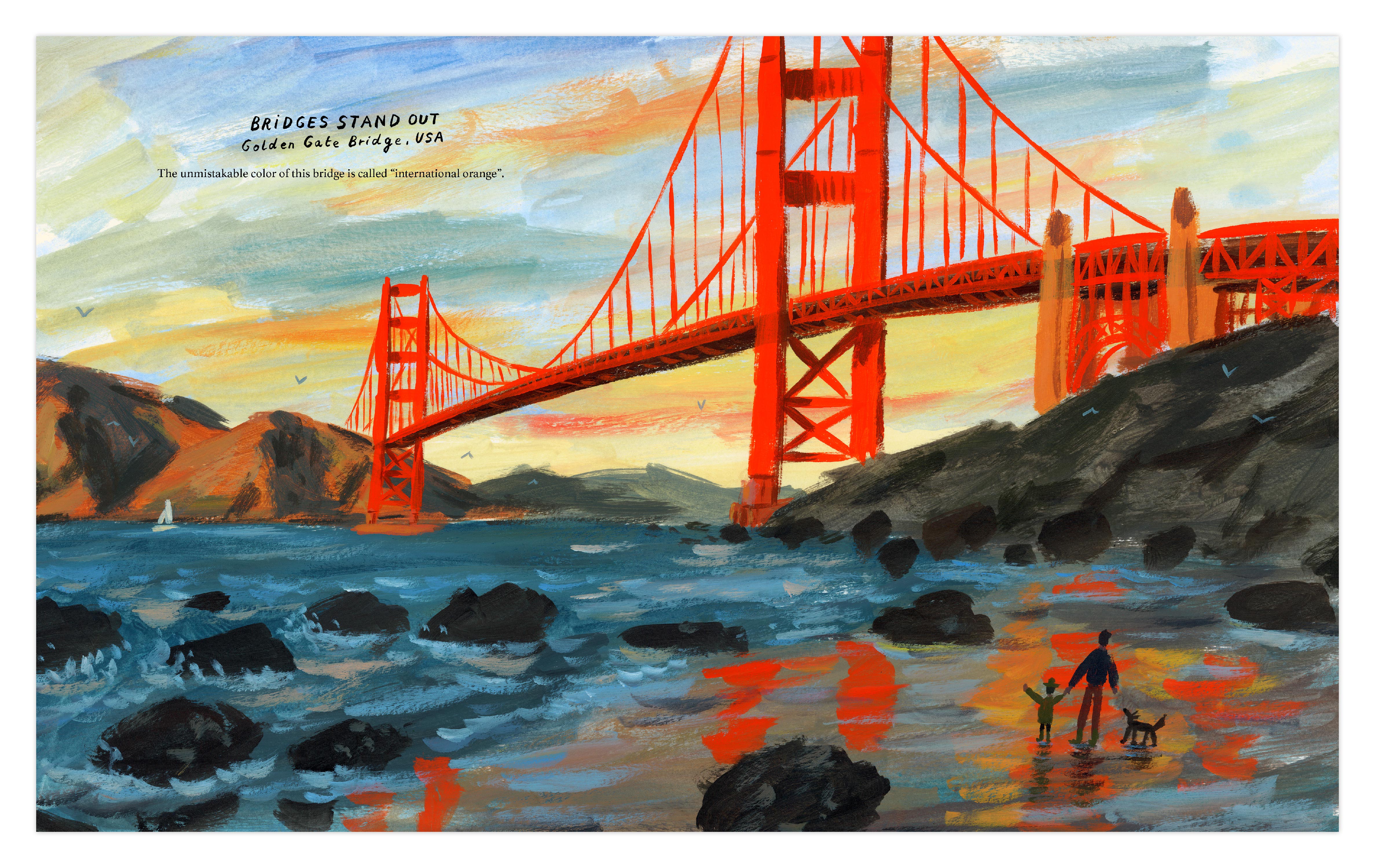 With poetic text and sweeping illustrations, Marc Majewski delivers a unique, accessible look at bridges all around the world: from San Francisco’s incredible Golden Gate to the Victoria Falls Bridge connecting Zambia and Zimbabwe to England’s Tower Bridge and Japan’s Akashi-Kaikyo Bridge and many in between. Both informational and thought-provoking, Bridges shows how these awe-inspiring structures unite the manmade and natural worlds, and how they bring humanity together.
